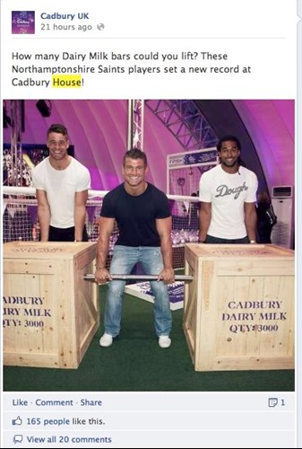 The concept is pretty cool, and Cadbury pushed it hard, particularly on Facebook where it posted pictures and posts from Cadbury House. Based on their high volume of 'likes' and comments, these posts resonated with their target audience (it helped that Cadbury had some high-profile athletes on board, too).